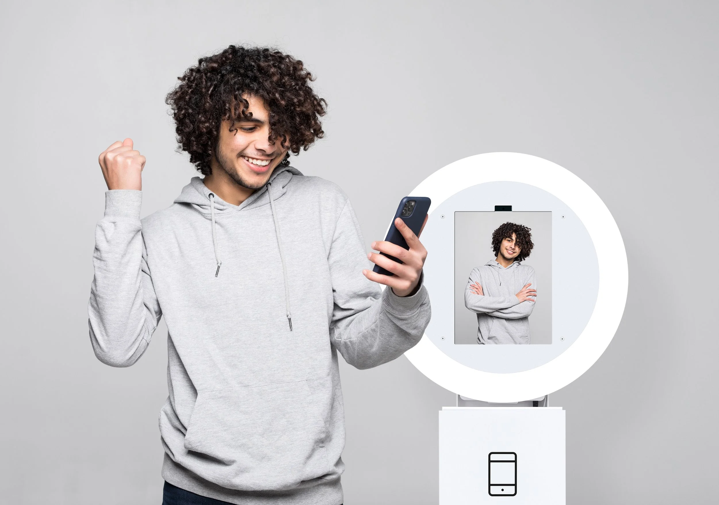 Elegant, high-end glam booth with studio-style lighting and beauty-filter finish. Skin softening for true Kardashian look.